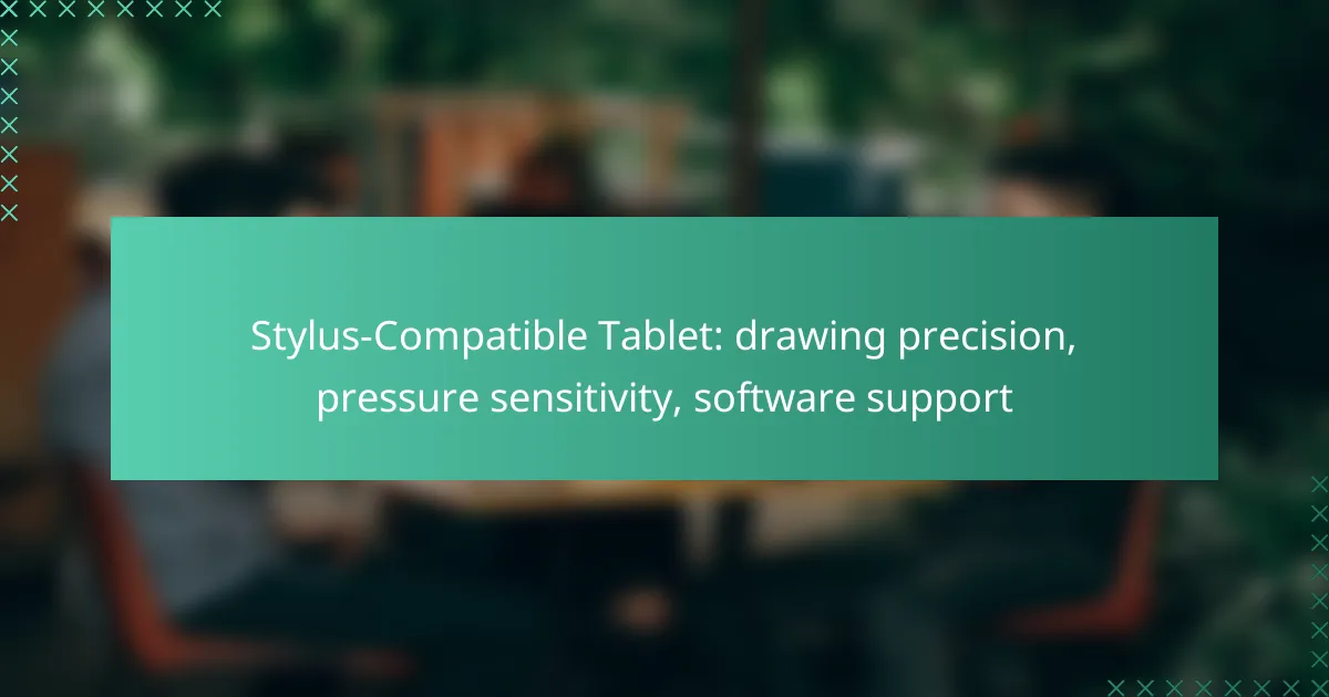 When selecting a stylus-compatible tablet, focus on drawing precision, pressure sensitivity, and software support. These factors significantly influence your overall experience, especially for artists and designers who require accuracy and responsiveness in their work.
